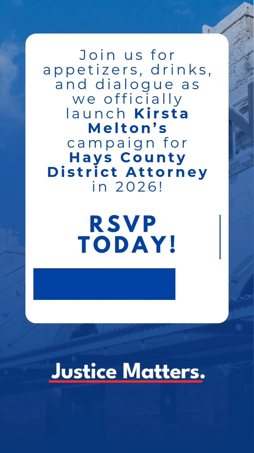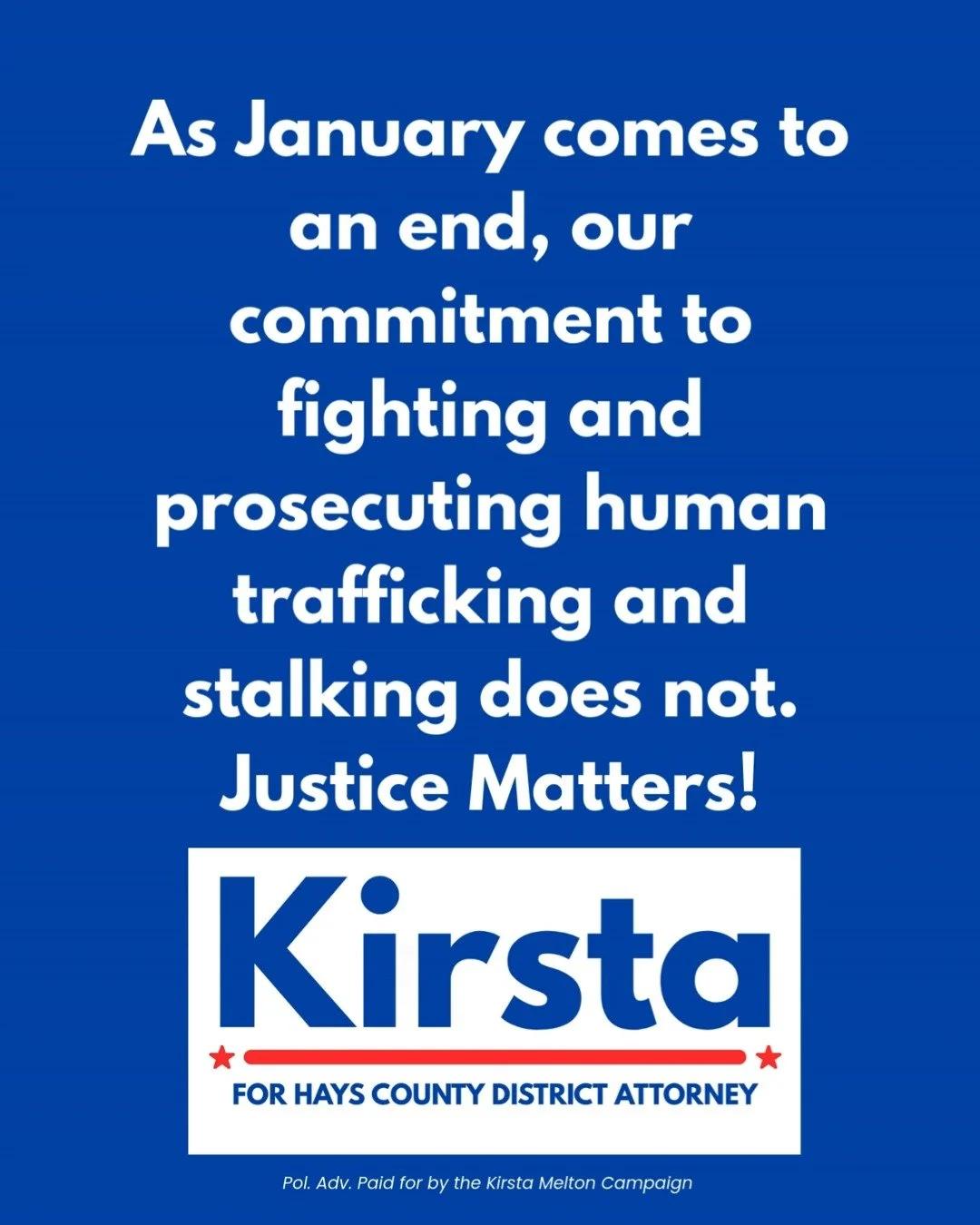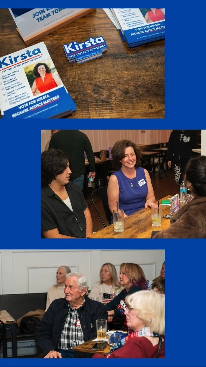 Kirsta needs you! It’s going to take a strong and enthusiastic team to bring Justice in Hays County.